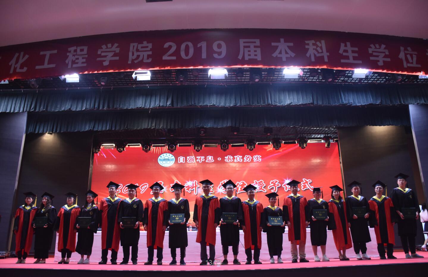 仪式上,胡松林宣读了《关于机械电气化工程学院2019届本科毕业生学士学位授予的决定》,毕业生们依次上台,学院领导、各系主任为本科毕业生扶正流苏、授予学位并合影留念。