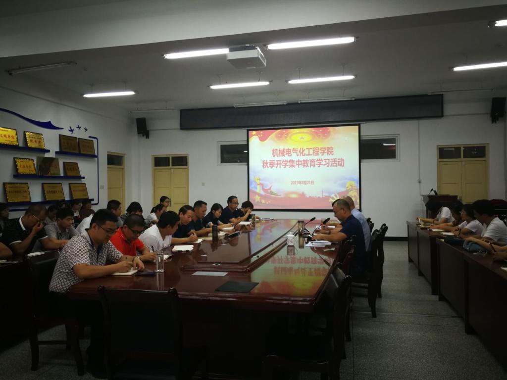 会上,胡松林宣读学院关于秋季开学集中教育学习的通知,对本次学习活动的意义、要求和学习安排计划做了传达。同时弋晓康希望学院教工要对此次集中教育活动高度重视,按照学院的学习计划进行组织、学习,同时做好学习考勤和学习记录,确保学习效果达到预期目标。