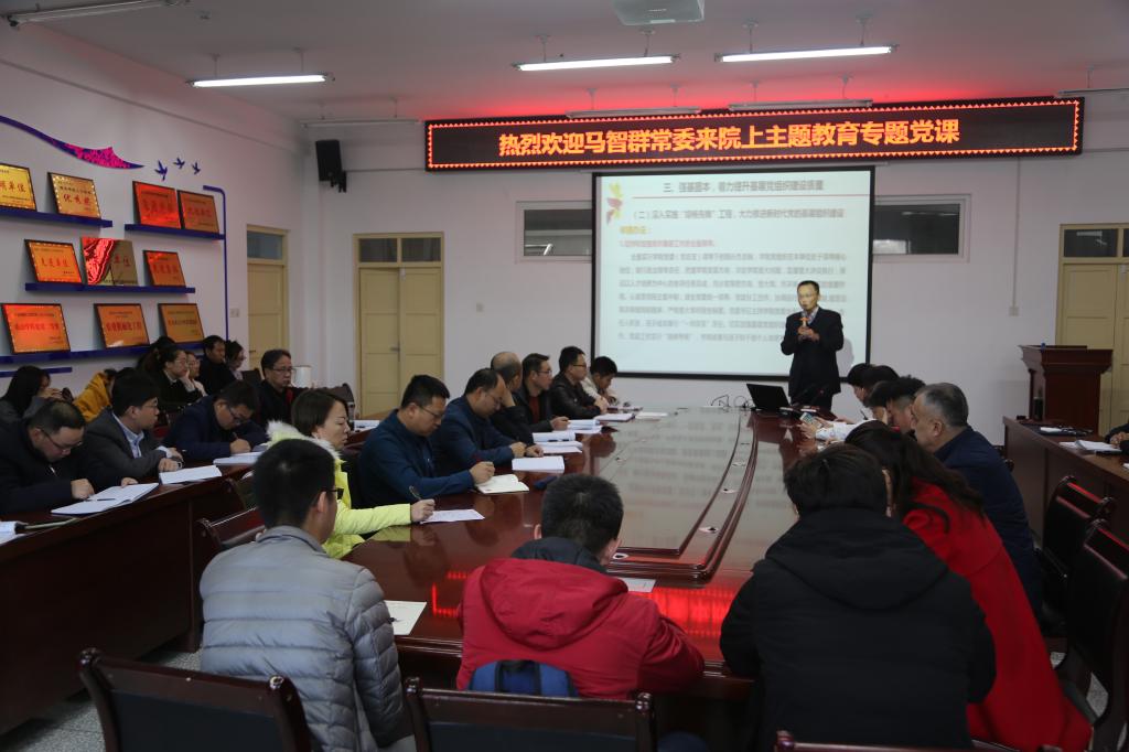 根据学校“不忘初心、牢记使命”主题教育安排,11月21日上午,党委常委、组织部部长马智群,在工科楼229会议室,给学院师生党员上专题党课。学院全体教工党员、学生党员代表和机关党总支党员代表参加。