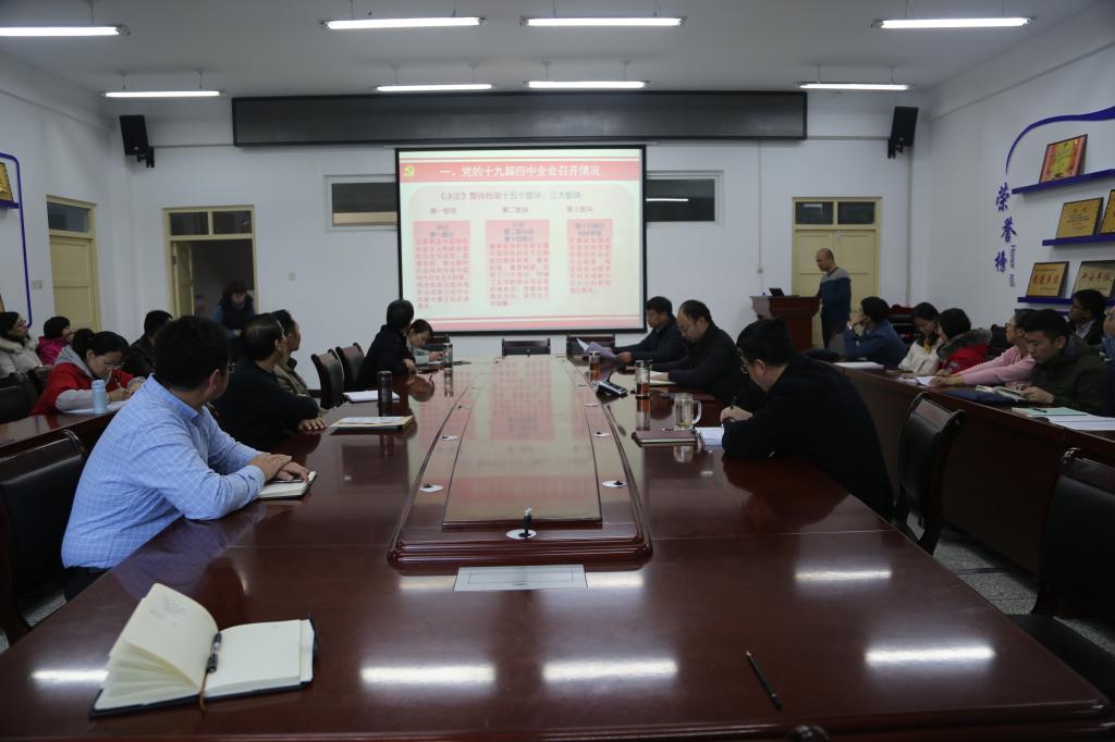 12月4日,学院在工科楼229会议室,开展党的十九届四中全会精神宣讲报告会,学院党委副书记、院长弋晓康进行宣讲,学院全体教工听取了宣讲。