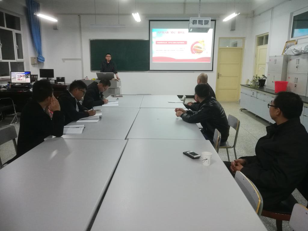 根据“不忘初心、牢记使命”主题教育工作安排,11月27日下午,学院教工第一党支部书记李传峰在工科楼201为本支部党员上专题党课,全体教工党员聆听了此次的党课。