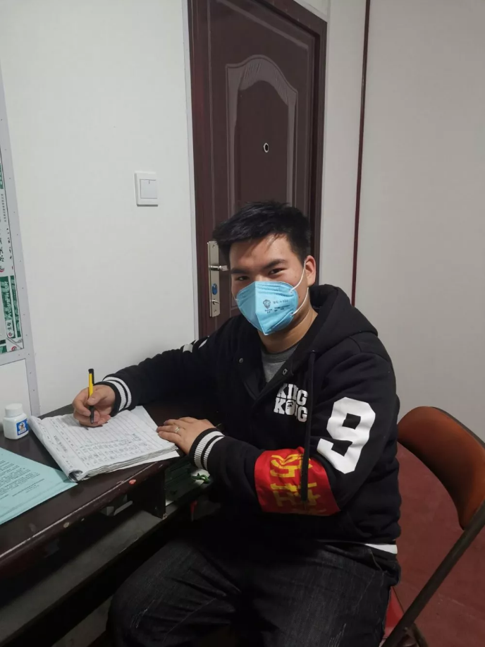 张瑞慧也是学院参加此次疫情防控志愿者的一名学生,家乡在山西省阳泉市郊区荫营镇三都村,志愿服务时间是晚上9点到第二天早上7点。每天,当大多数人还沉浸在梦乡的时候,张瑞慧已经准时出现在村子里的大门口了,开始忙碌有序的疫情防控工作。“打赢这场没有硝烟的战‘疫’,每个人都应当作出努力。作为大学生志愿者,能够参与其中贡献力量,我感到很光荣。”张瑞慧一边对来往的车辆进行登记一边说。“父母从小就教导我有国才有家,如今全国上下齐心协力防控疫情,作为一个塔大学生,很幸运能作为一名志愿者参加这次战‘疫’,为这场战役贡献力量。要相信没有一个冬天不会过去,没有一个春天不会到来。“疫情就是命令,防控就是责任”,作为一名胡杨学子,在疫情面前一定要不怕困难、不惧风险、坚持到底、直到疫情结束,武汉加油!中国加油!”