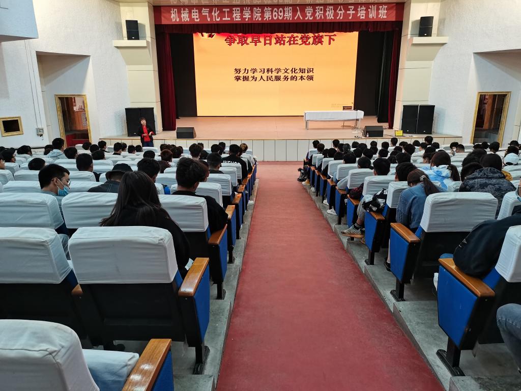 为深入学习贯彻习近平新时代中国特色社会主义思想,深化全国高校思想政治工作会议精神,巩固“不忘初心、牢记使命”主题教育成果,进一步加强对入党积极分子的培养和教育,提高入党积极分子的思想政治素质和理论水平,4月6日—4月10日,学院举办2021年入党积极分子培训班。