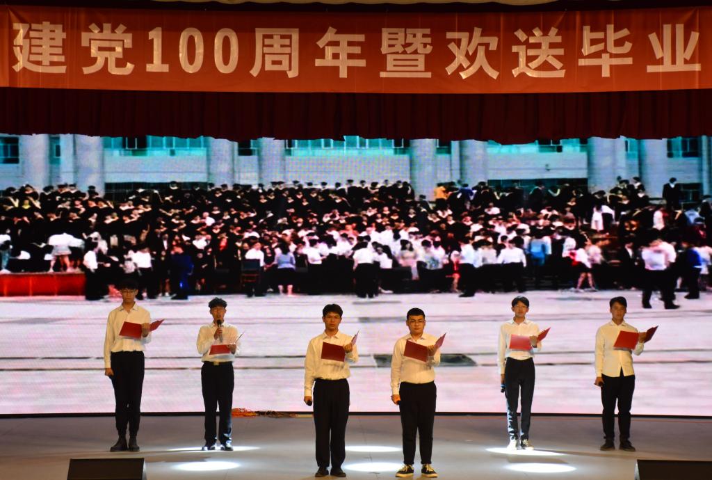 时光荏苒,且待芳华。为庆祝中国共产党成立100周年,歌颂党的伟大成就,继承和发扬党的光辉传统和优良作风,同时为了表达对毕业生的真挚祝福,5月29日晚,农业工程系教工党支部、学生党支部在大学生活动中心报告厅举办喜迎建党100周年暨欢送毕业生晚会。农业工程系学生党支部书记张哲等以及特邀嘉宾和广大师生共计约200余人观看了晚会。