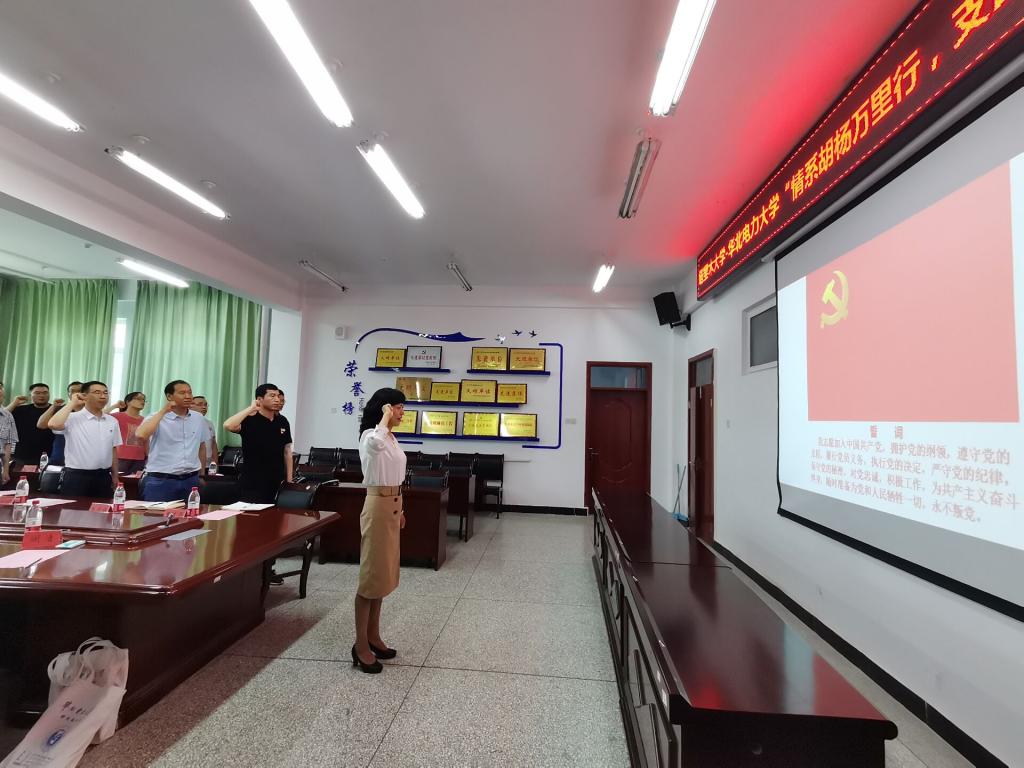 张爱萍带领大家重温入党誓词,大家面对鲜红的党旗,高举右手,庄严宣誓,表达对党的忠诚,表达了为党的事业奋斗终身的决心。全体党员齐唱《没有共产党就没有新中国》,重温党的光辉历史,激发了爱党爱国、干事创业的热情。