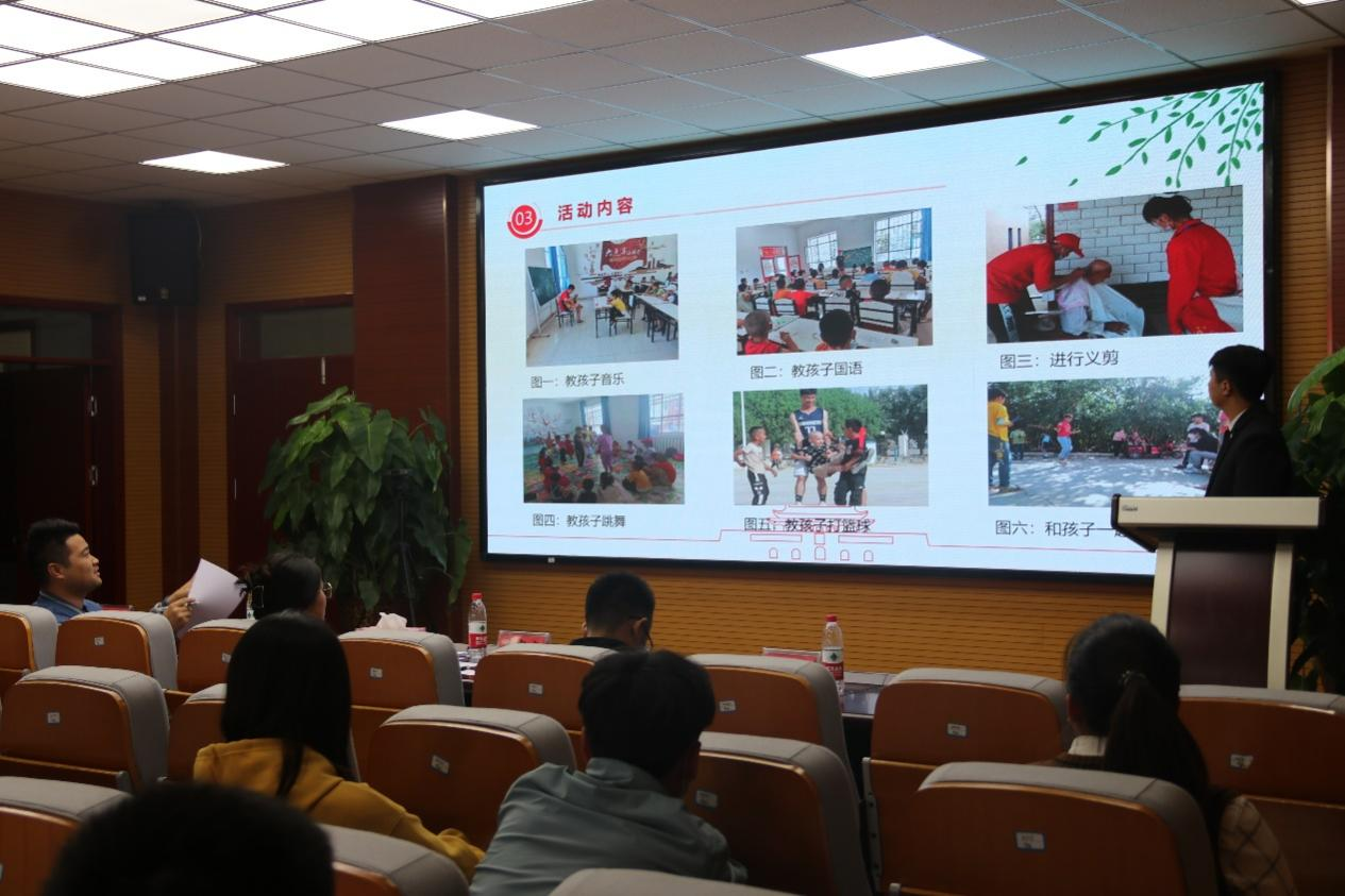 本次答辩的项目以文明实践、关爱少年儿童、法律服务与普法等内容为主。答辩过程中,各项目负责人以PPT汇报和视频展示的形式详细生动地介绍了项目的可行性、前期准备工作、预期效果、成果汇报以及队员心得等,展现了我院学生将专业知识与社会需求相结合,发挥自我价值,积极参与志愿服务,创新开展志愿服务的风貌。