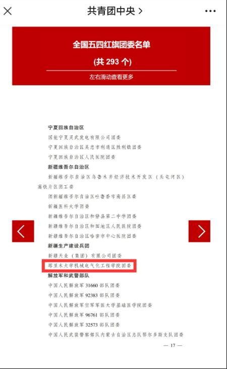 4月13日,据共青团中央关于表彰全国五四红旗团委(团支部)、全国优秀共青团员、全国优秀共青团干部的决定,机械电气化工程学院团委被授予“全国五四红旗团委”称号。