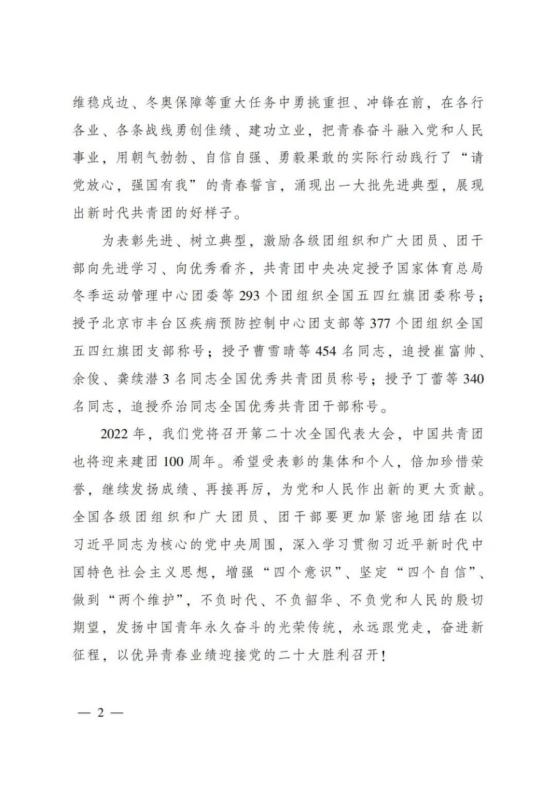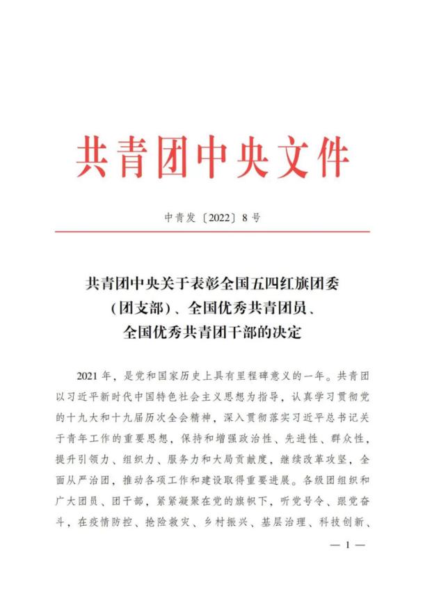 为表彰先进、树立典型,激励各级团组织和广大团员、团干部向先进学习、向优秀看齐,共青团中央决定授予293个团组织全国五四红旗团委称号;授予377个团组织全国五四红旗团支部称号;授予457名同志全国优秀共青团员称号;授予341名同志全国优秀共青团干部称号。