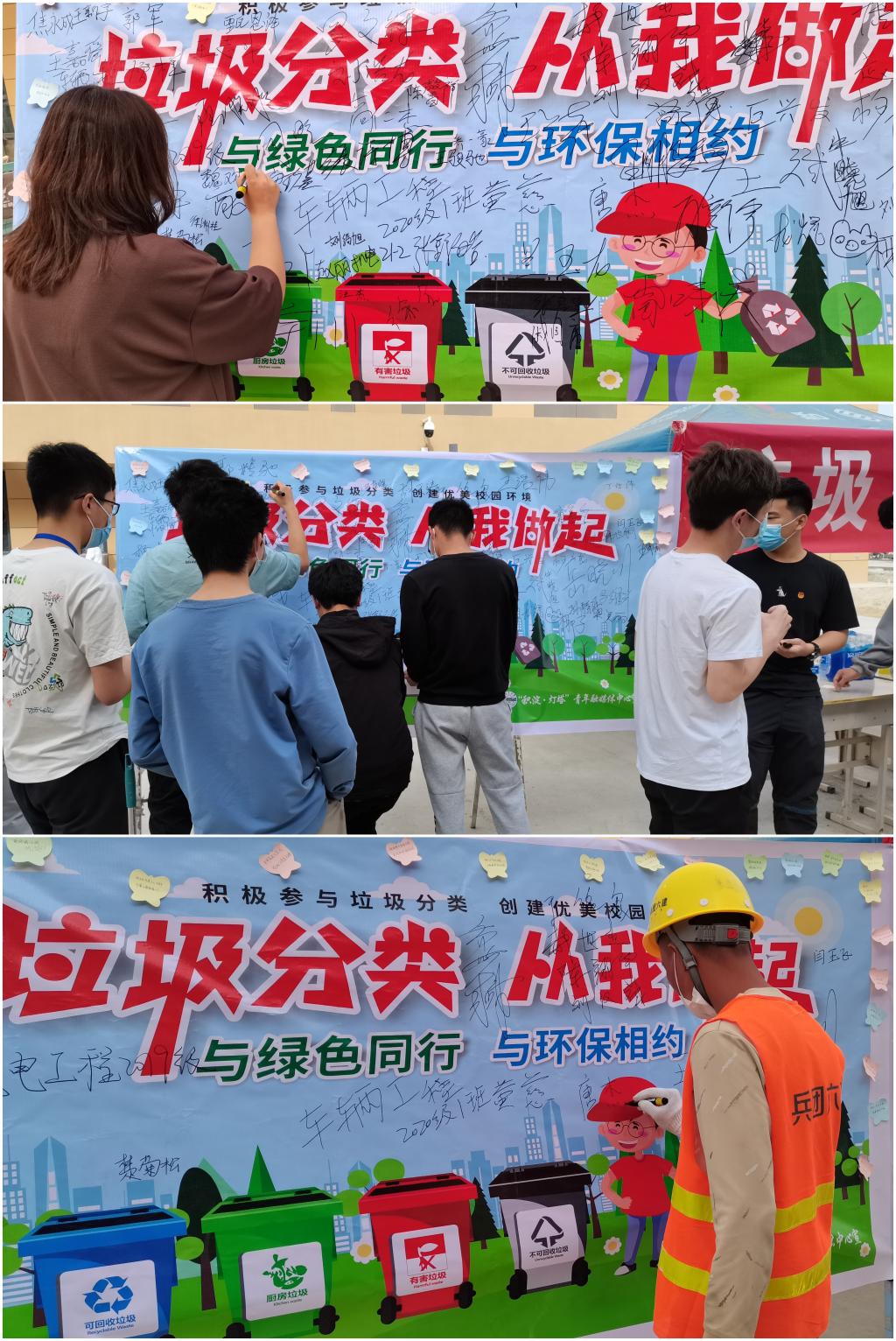 活动中,往来师生驻足聆听,宣讲员热情为其讲解垃圾分类小知识。宣讲结束后,师生共计百余人在海报和横幅上留下签名。