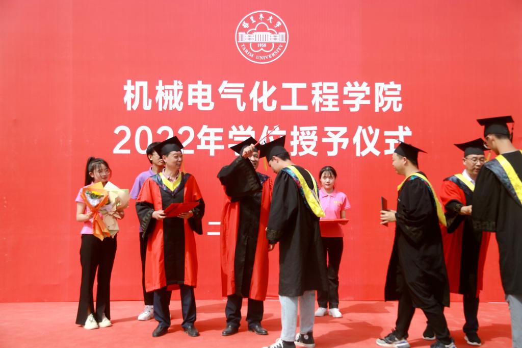 6月14日上午,机械电气化工程学院在西区运动场举行2022年学位授予仪式。我校党委常委、副校长石长青出席为毕业生逐一拨穗,并合影留念。学院领导、毕业班班主任、辅导员、2022届毕业生代表共同见证了这一喜悦时刻。