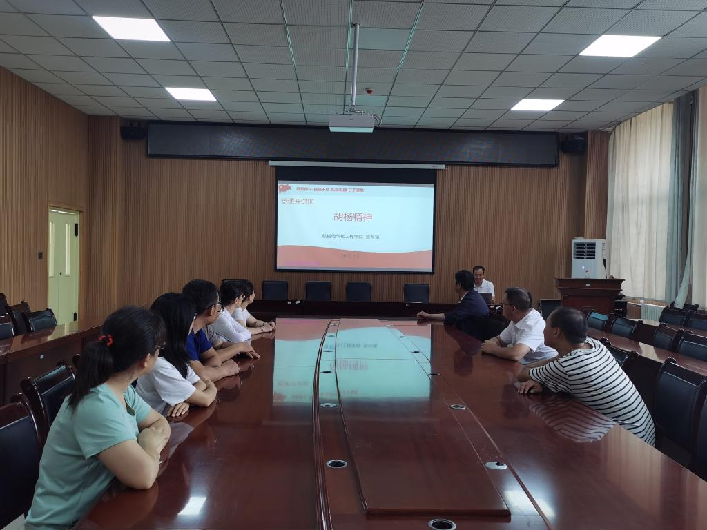 7月1日,电气工程系教师党支部邀请到机械电气化工程学院副院长张有强同志,以“胡杨精神”为主题进行了一次专题党课。