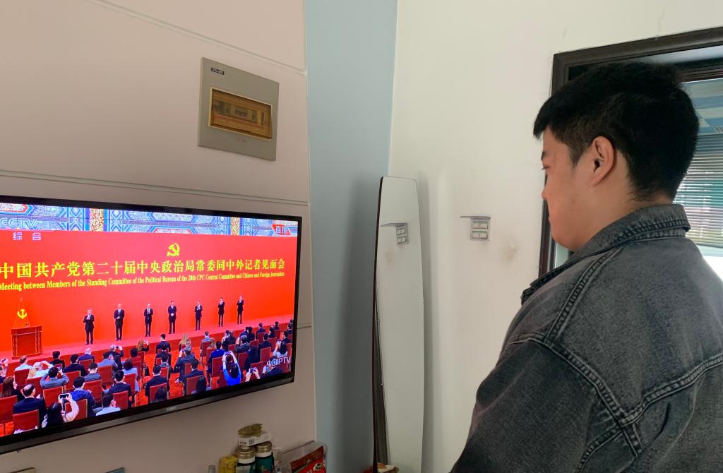 机械电气化工程学院农机2019级4班郝正在河北省秦皇岛市观看中国共产党第二十届中央政治局常委同中外记者见面会