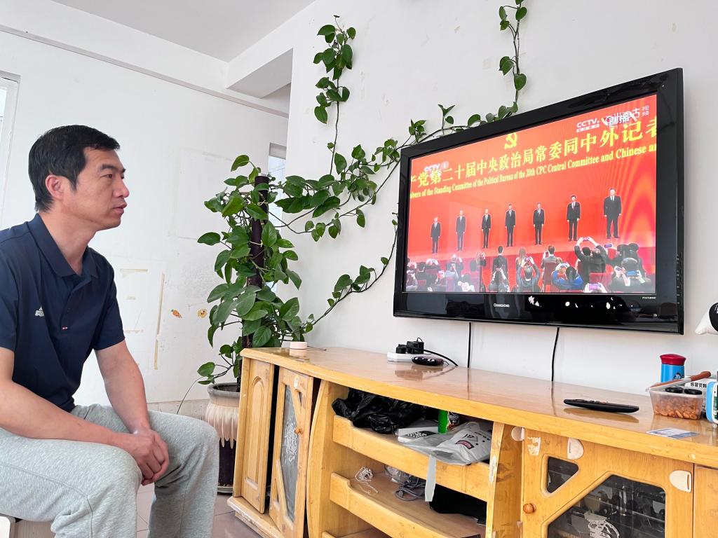机械电气化工程学院机械工程教师胡灿在阿拉尔市新苑名豪5-6区41号楼1-203室观看中国共产党第二十届中央政治局常委同中外记者见面会。