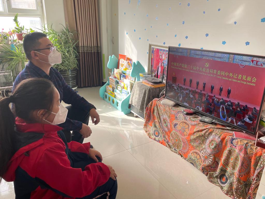 机械电气化工程学院李勇及家属在塔大38号楼1-142观看新一届中央政治局常委中外记者见面会