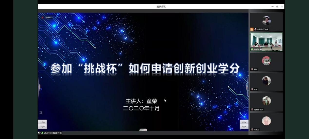 童荣介绍了参加大学生科技竞赛申请创新创业学分的流程和认定方式,让同学们对创新创业学分的认定标准更加了解。