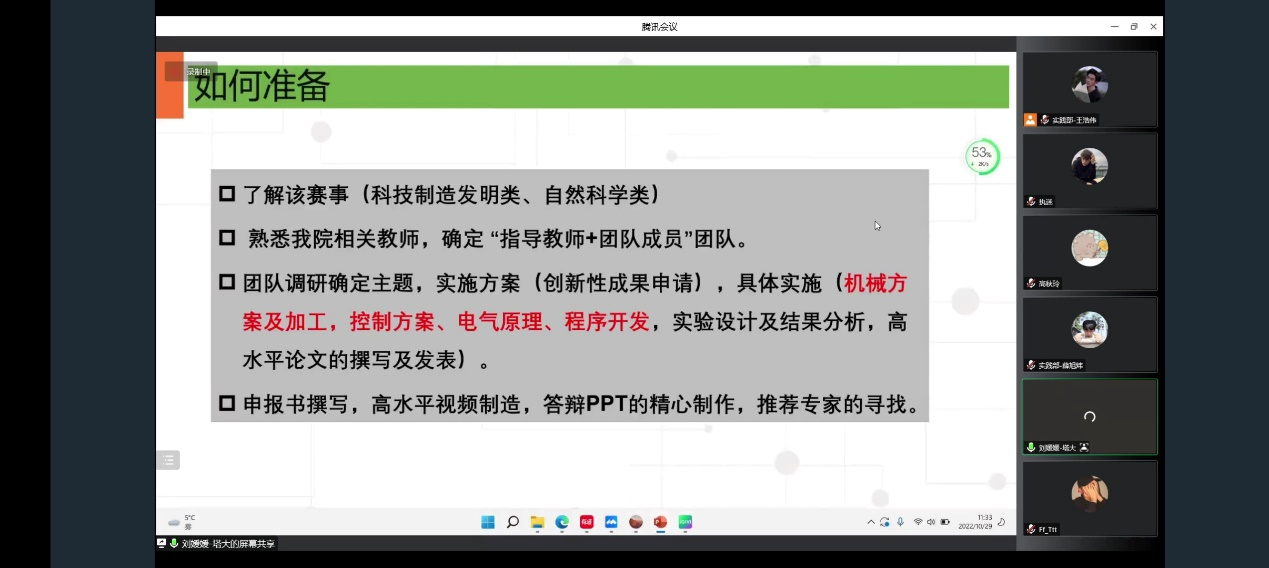 刘媛媛、胡灿两位老师分别从团队组建、创新选题、优秀案例分析等方面分享如何做好一个优秀的项目。汪再斌,张瑞慧分享了自己的参赛经验,展示了他们在竞赛中的成长和收获。