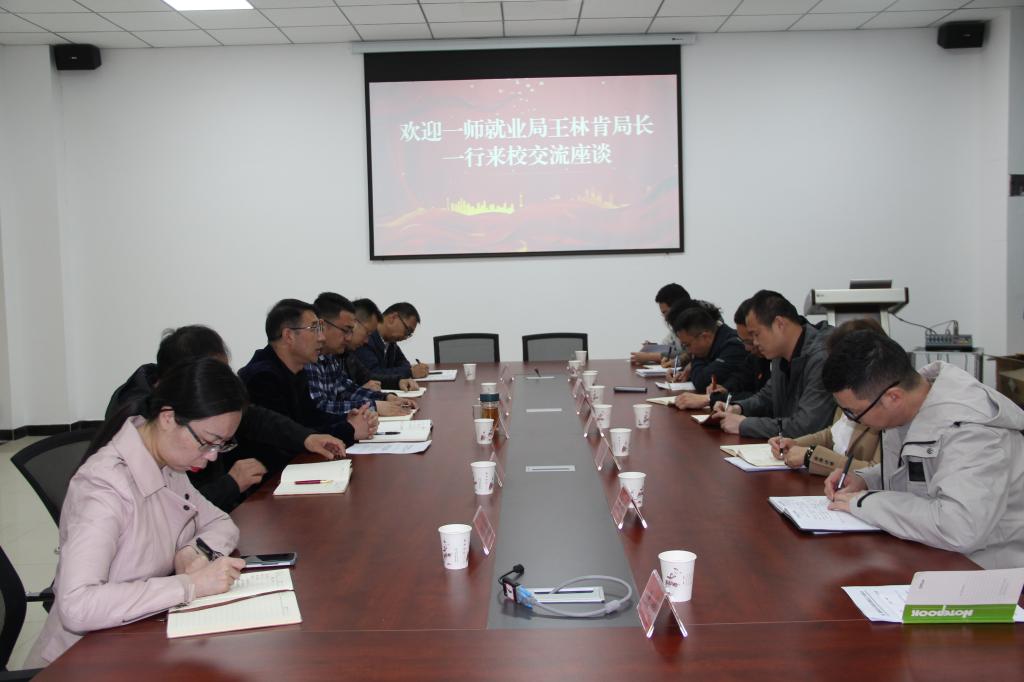 王林肯介绍了第一师阿拉尔市就业局的基本情况和业务范围,希望借助高校平台进一步推动阿拉尔市职业技能的培训工作。