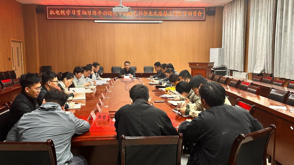 4月19日,机械电气化工程学院学习贯彻习近平新时代中国特色社会主义思想主题教育动员会在东扩区一期D108会议室召开。学院党委委员、纪委委员、全体副科级以上干部和党支部书记参加会议。会议由党委书记王旭峰主持。