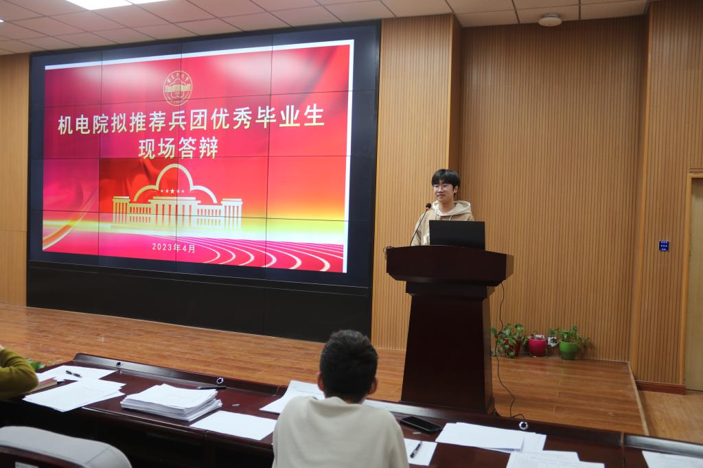 答辩毕业生主要从学习生活、科技创新、社会实践、作用发挥等方面进行了汇报。评委团对各位毕业生的答辩内容进行认真细致的评选,最终评选出7名拟推荐兵团优秀毕业生。