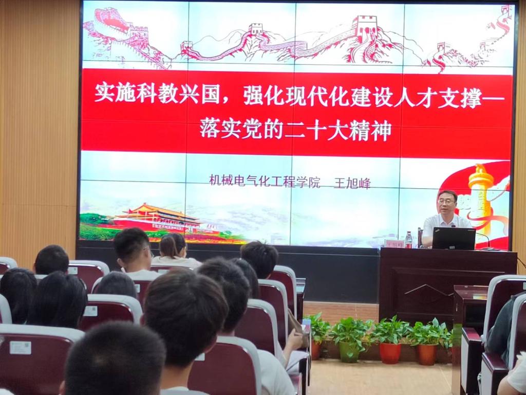 王旭峰指出,认真贯彻落实习近平总书记在党的二十大报告中关于“实施科教兴国战略,强化现代化人才支撑”的重要部署,深刻阐释了“科技是第一生产力、人才是第一资源、创新是第一动力”的重大理论和实践问题,努力引导大学生健康成长,报国成才,引导大学生与时代发展同向同频,鼓励大学生挑战自我,勇担新时代新使命,让青春之花绽放在火热的现代化建设实践中。