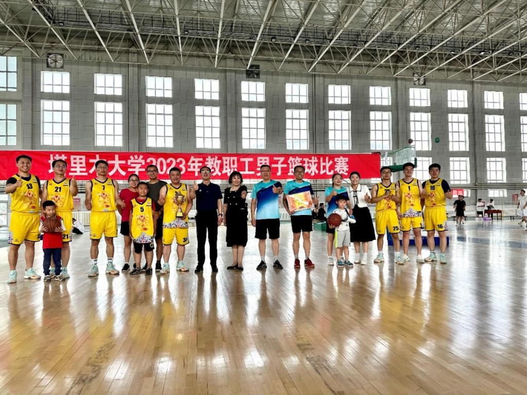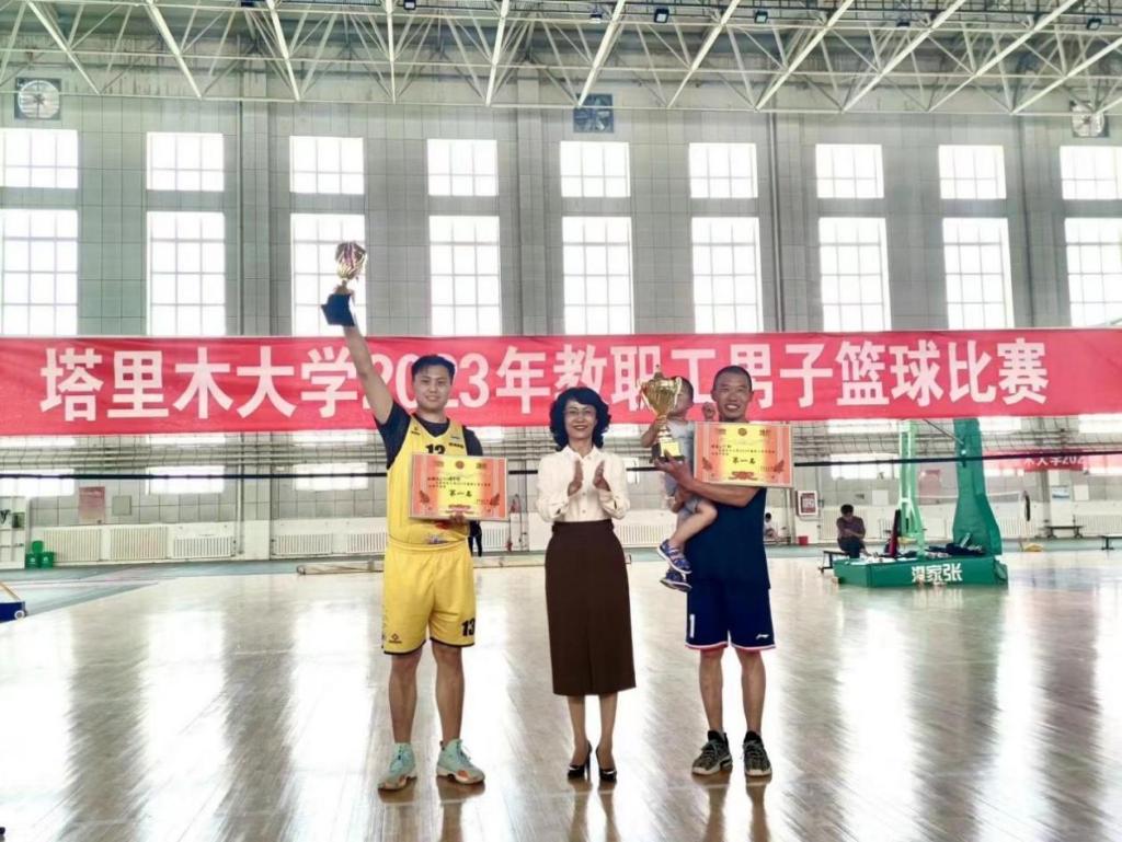 6月18日,塔里木大学教职工男子篮球比赛经过前几轮紧张激烈的对抗,落下了帷幕,最终学院教职工组成的篮球队在比赛中荣获第一名的成绩,张爱萍校长为机电院男篮队伍送上冠军奖杯,并表示祝贺。