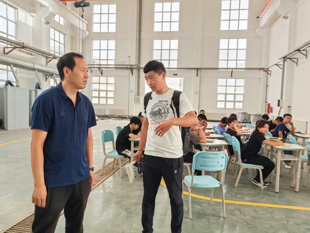 张有强来到工程训练中心车、铣、钳、焊工艺车间,检查了实习场所设施、实习指导教师与学生到位情况,并与指导老师及实习学生进行了亲切交流。在听取了相关负责人对学生安全教育情况、实习内容安排及实习进度的汇报后,详细了解同学们返校后关于食堂、宿舍用水、卫生等方面存在的问题,并立即与新校区后勤保障服务进行联系沟通解决。