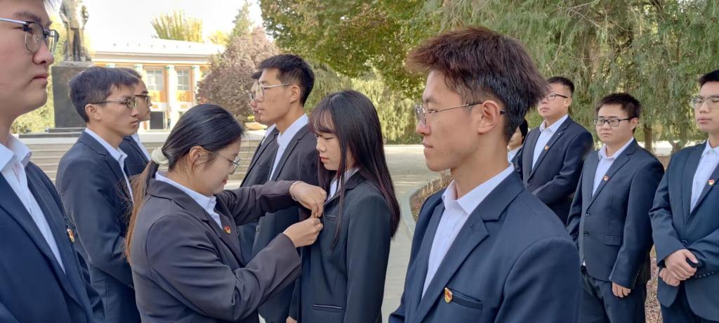 11月8日下午,农业工程系学生党支部开展“农业工程系学生党支部2023年秋季预备党员入党宣誓”系列主题活动。农业工程系学生党支部书记、学生党员、预备党员以及六位新发展的预备党员参加,由农业工程系学生党支部书记张哲主持,在塔里木大学校史馆门口展开。
