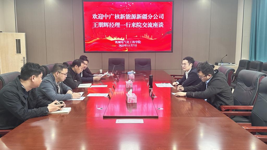 11月7日,中广核新能源新疆分公司团委书记、人力资源部经理王朋辉一行来院访问交流并开展企业招聘工作,与学院党委委员、副院长张有强、党委委员、电气工程系党总支书记张洪洲,电气工程系副主任王宪磊,电气工程系部分教师等进行深入座谈交流。