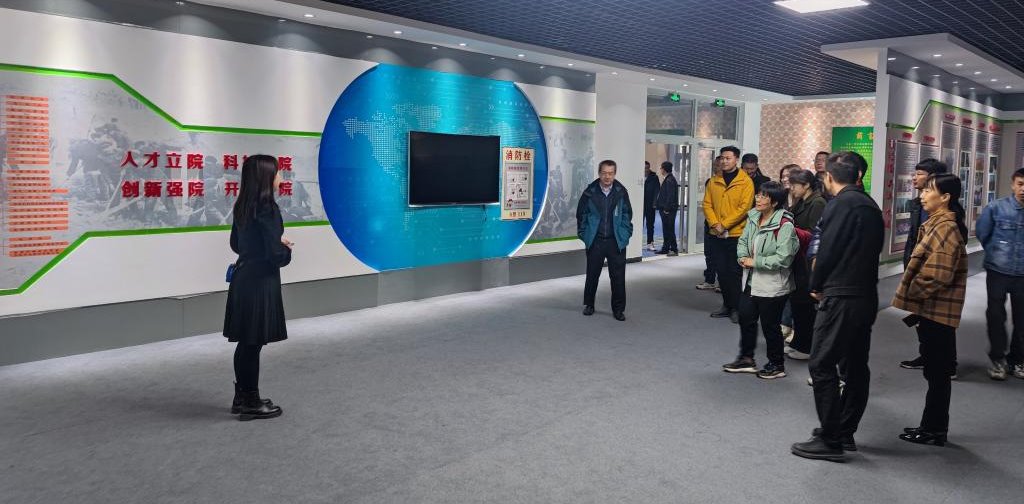 汤智辉所长带领我们参观新疆农垦科学院历史博物馆、介绍了受过国家领导人接见的院士事迹、研究所生产的科研成果样机,在参观过程中双方就相同研究方向的科研情况等进行了交流。