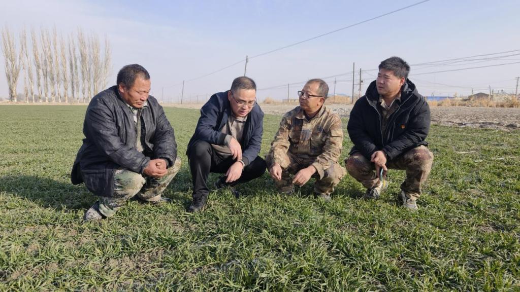 科技特派员围绕团场各连队冬季种植的冬小麦,与连队负责人和种植户深入探讨冬小麦种植技术,向种植户现场讲解种植相关技术和注意事项,了解相关科技需求,有针对性开展技术指导。