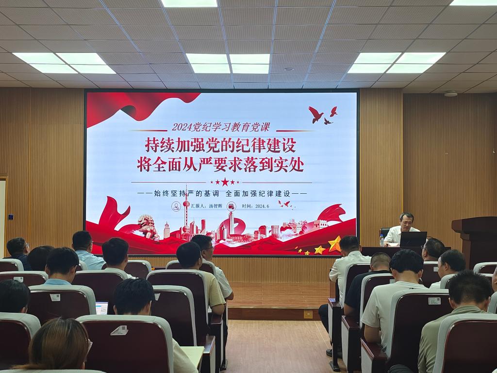 6月26日,校党委常委、副校长汤智辉在新校区一期机电楼D109报告厅为学院师生党员上党纪学习教育专题党课。