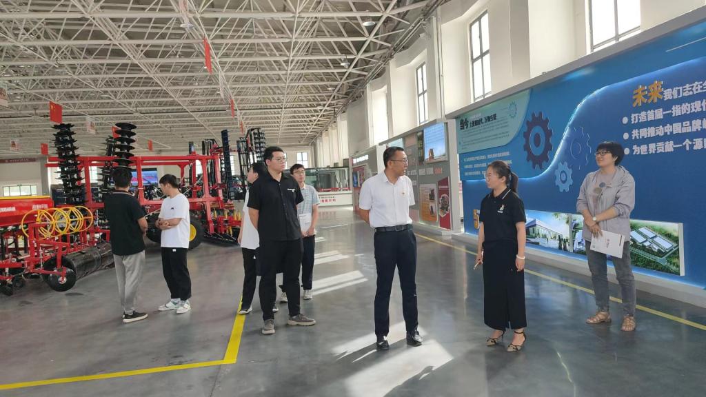阿拉尔钵施然农业机械科技有限公司人力资源经理段婷婷带领大家参观了企业文化走廊和生产车间,并与学院师生党员进行了现场交流。段婷婷介绍了党支部在党员教育、组织建设、企业发展等方面的经验和做法,希望以此次党日活动为契机,形成校企共建党建活动成果,共同搭建校企合作平台。范修文表示双方具有深厚的校企合作基础,希望在技能实践、科研创新、实习就业等方面深入合作,提升党建活力,助推校企合作更好发展。