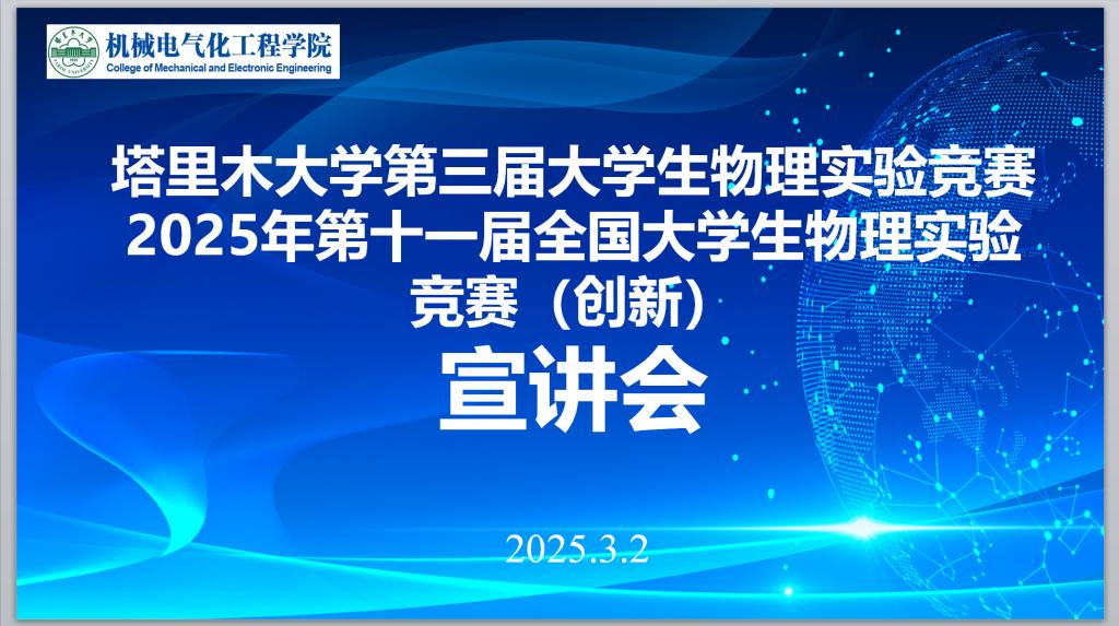 为深化实践育人理念、提升学生创新能力。3月2日,塔里木大学第三届大学生物理实验竞赛(创新)赛前宣讲会通过线上平台成功举办。会议由董晓天主持,吸引百余名师生参与。