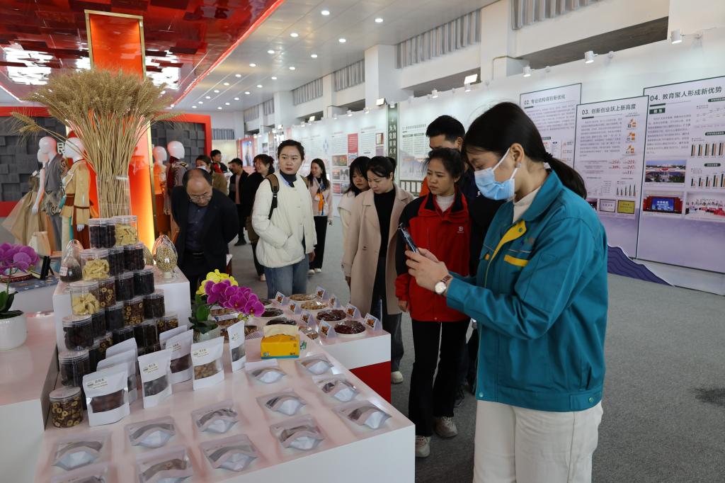 用人单位代表们在志愿者的引导下,走进了“我们这五年”主题展览馆,通过丰富的图文资料、实物展品和多媒体展示,全面了解了塔里木大学近年来在用“胡杨精神育人、为兴疆固边服务”等方面取得的丰硕成果。