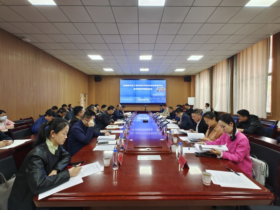 王旭峰对与会专家表示欢迎,并简单介绍了学院本科教学自评估工作的开展情况。张有强从落实立德树人根本任务、培养过程、教学资源、教师队伍、学生发展、质量保障、教学成效等方面向评审专家汇报了学院自评报告。王海明汇报了机械设计制造及其自动化专业的自评报告。