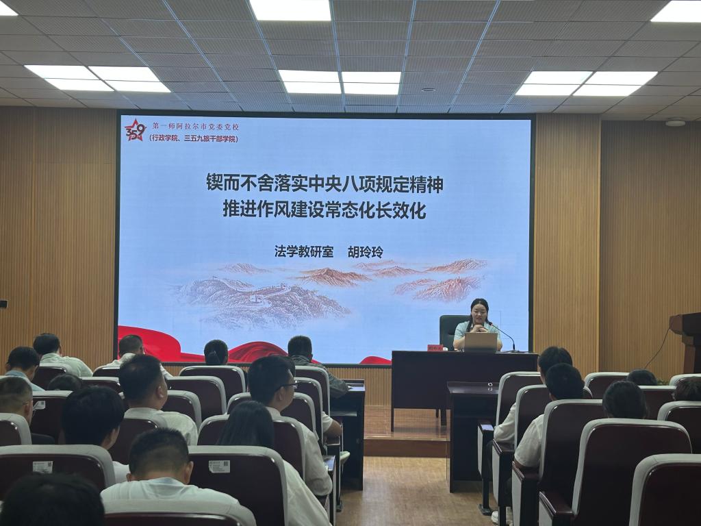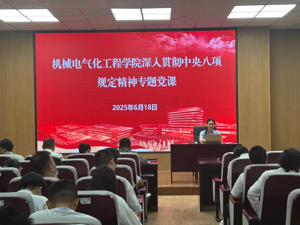 6月18日,机械电气化工程学院党委邀请第一师阿拉尔市党委党校(行政学院)法学教研室主任胡玲玲教授,为全院师生党员讲授专题党课。学院全体师生党员参加培训,此次培训通过理论阐释与案例警示双轨并进,推动纪律意识内化于心、外化于行,深化党员同志对新时代党的作风建设的政治自觉与行动担当。