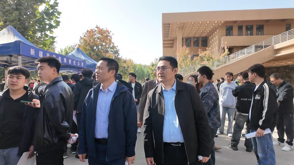 10月15日,以“‘机’聚英才•‘电’燃未来”为主题的塔里木大学机械电气化工程学院2025年秋季专场招聘会在新校区1期C栋停车场顺利举行。学校党委常委、副校长张宏荣莅临现场进行交流,并对工作予以指导。
