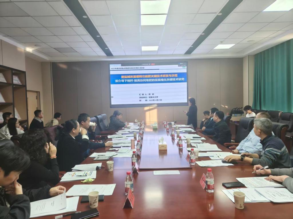 11月15日,在新校区一期机电楼D323会议室举行兵团重点领域科技攻关项目“耐盐碱炭基缓释功能肥关键技术研发与示范”项目启动会。会议邀请新疆农业大学副校长王振华教授、石河子大学吕新教授、新疆农垦科学院棉花所副所长王刚等多位评议专家。塔里木大学党委常委、副校长汤智辉、科研处副处长张锐利、学院党委书记王旭峰及项目组等30余人参加会议。