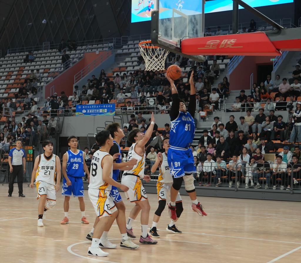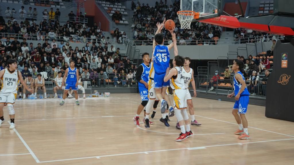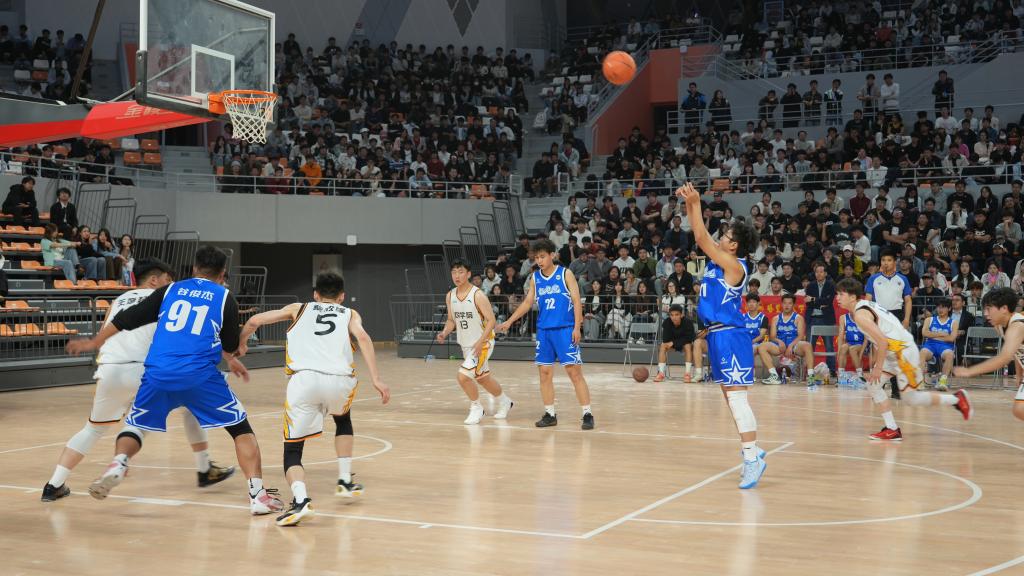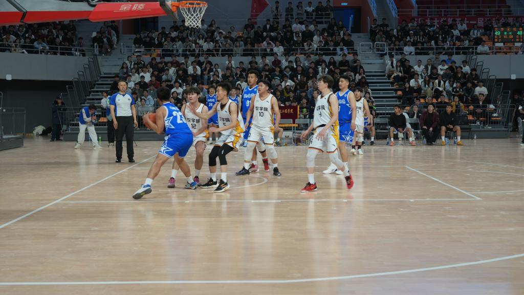 赛场上,我院男篮队员们精神抖擞、斗志昂扬,充分展现了新时代青年学子的青春风采。奔跑、传球、防守、投篮,每一个动作都精准有力、利落干练,每一次攻防都凝聚着团队的智慧与汗水。学院师生自发组成啦啦队,呐喊声、欢呼声此起彼伏。赛场氛围热烈而浓厚。