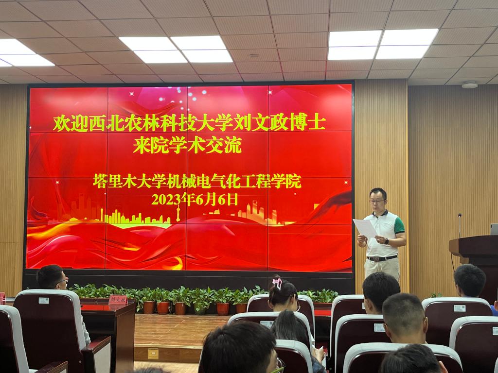 2023年6月6日,学院邀请西北农林科技大学刘文政、苏媛博士来我院开展学术交流,全体研究生和教师代表参加报告,报告在学院D109报告厅举行,徐志佳副院长主持。