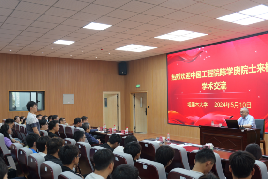 交流环节,师生积极提出“人机结合的残膜回收机通过高速摄像间隔时间如何设置和控制”“地膜回收再利用时,是否有一个科学方法去评估地膜加工适用面积”“可降解生物地膜使用是否会产生其他影响环境”等方面的问题,陈院士也一一耐心解答,大家纷纷表示受益匪浅。
