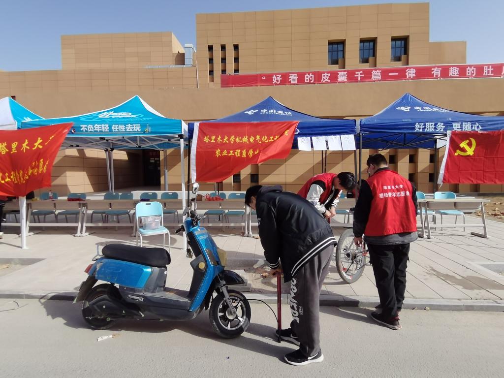 农业工程系学生党支部岳晓川同志说,我们已经开展了两年这样的活动,一方面希望为我们学院的学生和老师提供便利,也将我们专业所学的用到实处;另一方面作为积极分子,我希望做到为同学们更好的服务,吸引带动一大批人积极参加志愿服务,积极向党组织靠拢。