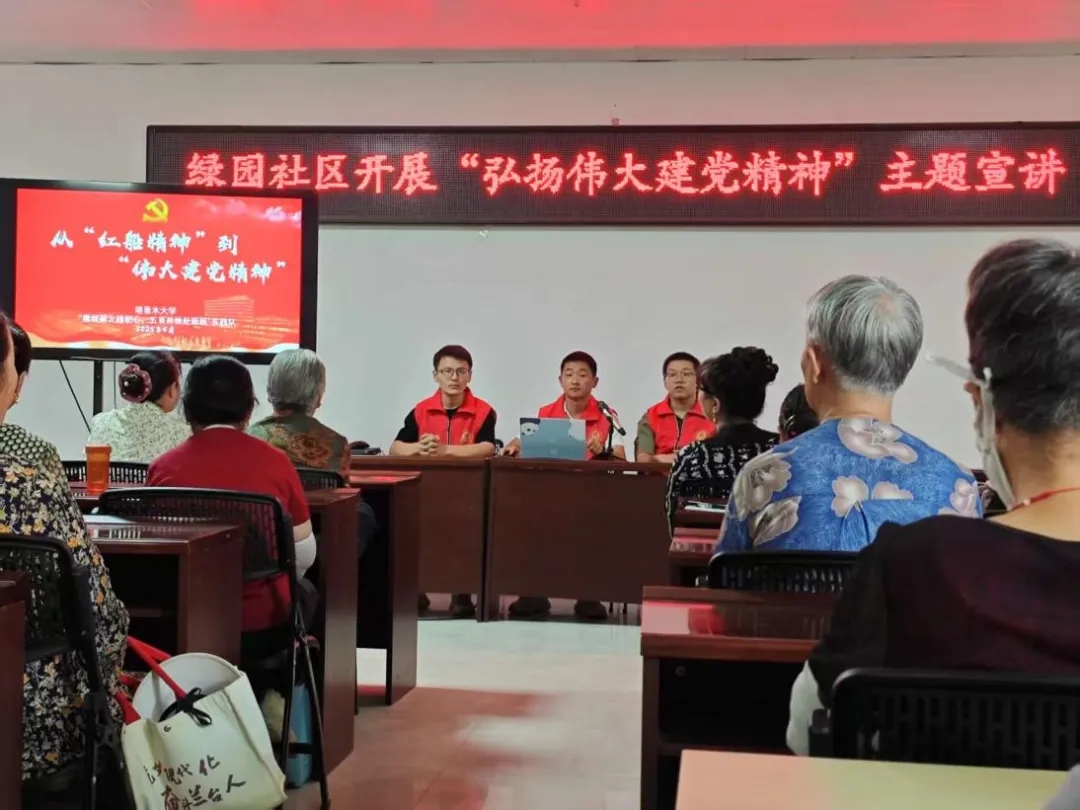 6月30日,塔里木大学机械电气化工程学院“赓续薪火践初心,五育并举赴新程”实践队走进阿拉尔市绿园社区,开展“弘扬伟大建党精神”主题宣讲活动,为社区居民带来了一场深刻且生动的精神洗礼,让伟大建党精神在基层深深扎根。