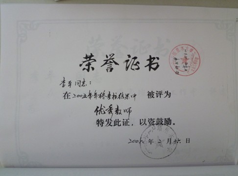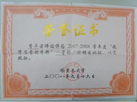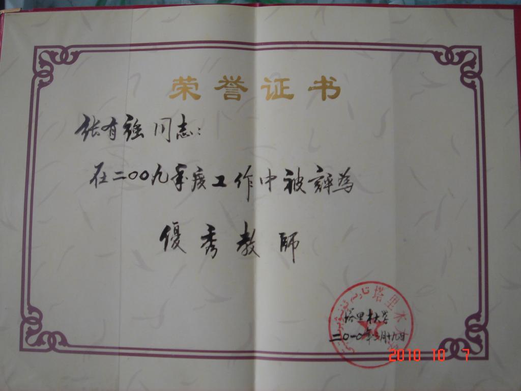 全国首届大学生基础力学实验竞赛新疆赛区优秀指导教师称号,2010 |