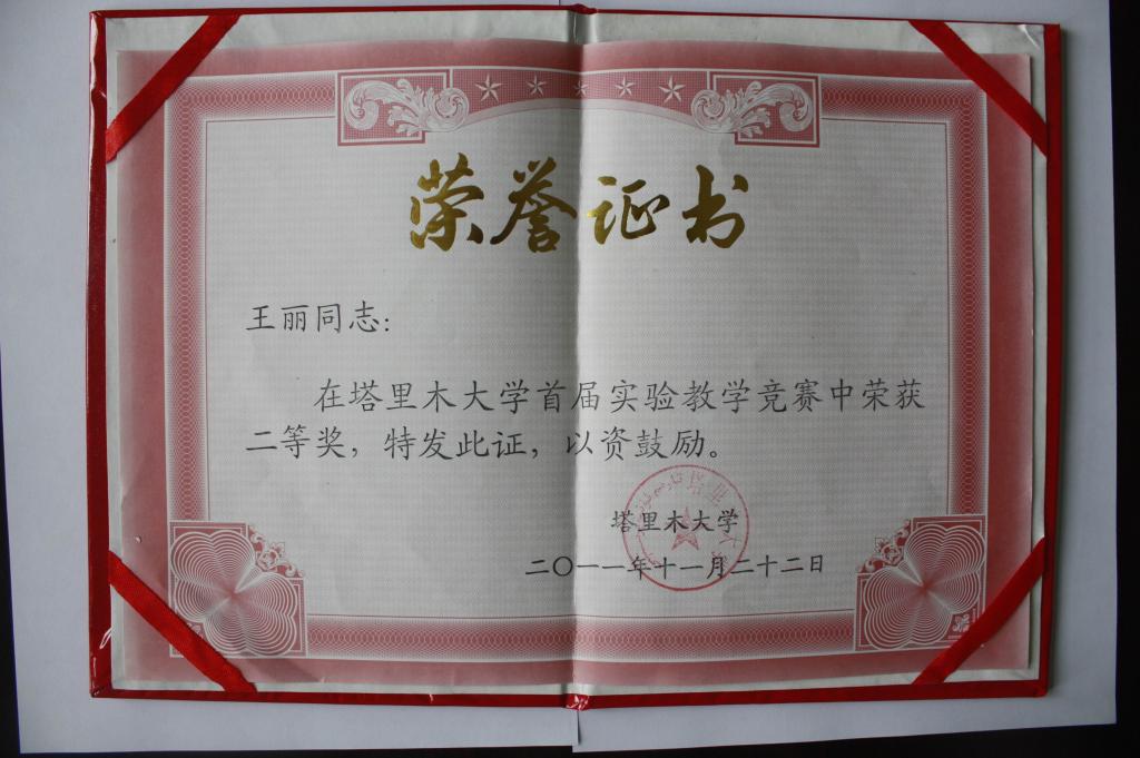 (4)2011年,王丽塔里木大学首届实验教学竞赛,荣获二等奖