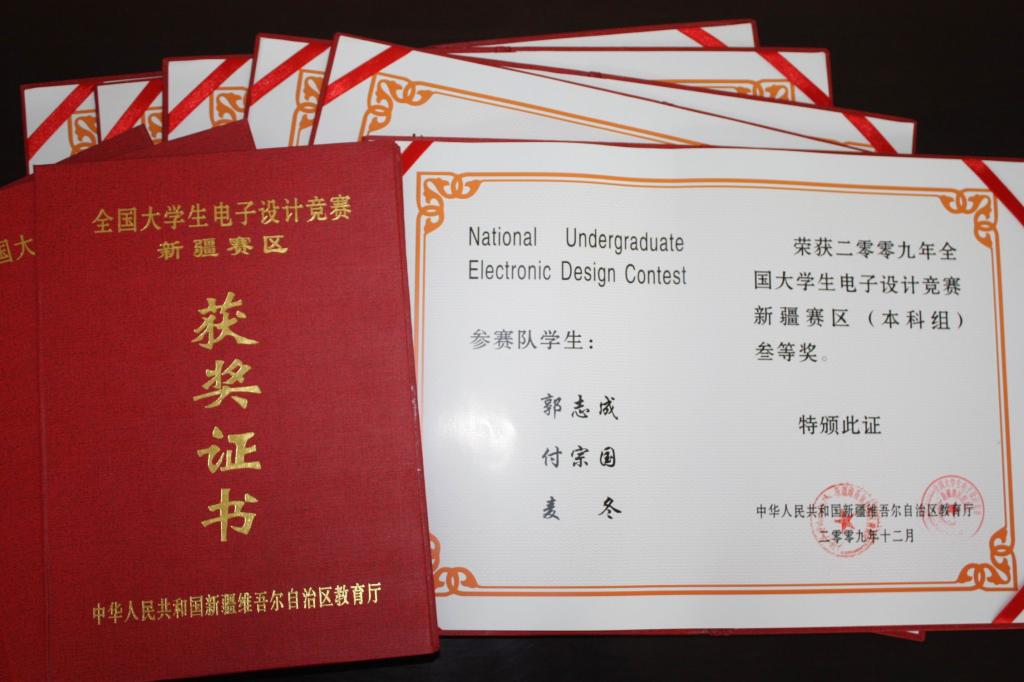 (5)2011年,王勃等6人参加全国大学生电子设计竞赛(新疆赛区)比赛获叁等奖