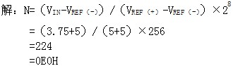 3.若某8位ADC输入电压范围是-5V~+5V,求出VIN=3.75V的数字量编码(偏移码)。